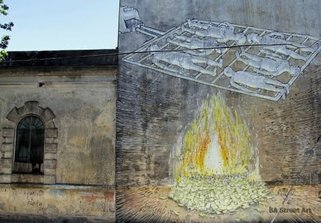 Especially the Argentinian capital Buenos Aires seems to be one of his favorite target: After he painted that impressive mural of obediently leader following Argentinian folks back in November 2011 and the funny BBQ mural and the Blu Planet painting in December, the Italian mural king came up with a new money river mural just a few days ago!