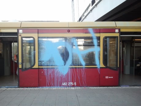 On my regular way through Berlin I had to wait at Ostkreuz for my train and was pleasantly surprised when that blue dripping babe entered the station. In my eyes this is definitely the next step of train graffiti, taking the fire extinguisher technique to another level! And it perfectly shows what more anti-graffiti cops and criminalization carry through: