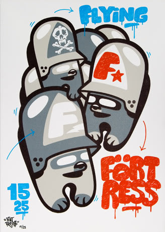 Famous graffiti artist Flying Förtress breaks the first ground with his limited, hand signed prints on canvas. Each Canvas is screenprinted and also handpainted and very special Flying Förtress original in size 50x70 cm for your collection.