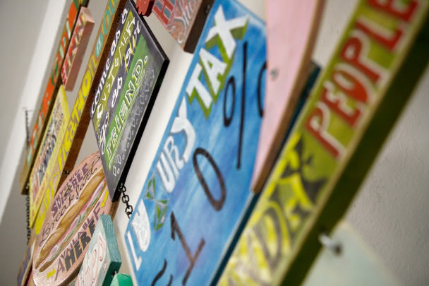 When I visited the show yesterday, I was really impressed by the interesting installations and crazy paintings. One reason why I like the exhibition is, that every single artwork is based on lost properties, especially on wood, which gives an very special character to each artwork.