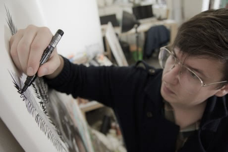 The marvelous paintings and illustrations by graffiti-inspired Danish artist Jakob Tolstrup describe his worldview in the humorous way of someone who was born in the middle of nowhere - the countryside of Denmark. During the last couple of years, Jakob not just pushed his amazing painting series forward, experimenting with different techniques, materials and mediums, but also worked together with different galleries and invoiced several papers and magazines for his illustration works.