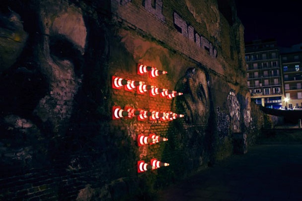 uac: Your street artworks seem to be always complex and often more an intervention than art in its classical sense – I remember the luminous traffic cones, sticking on a wall or the decorated urban lamp posts. What’s your intention and what’s the message of your artworks?