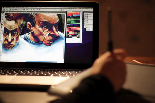 There are 4 vanishing points and every element will be put in according to the perspective. You will be able to walk along the wall and see the story evolve with every step you do.” (MadC)