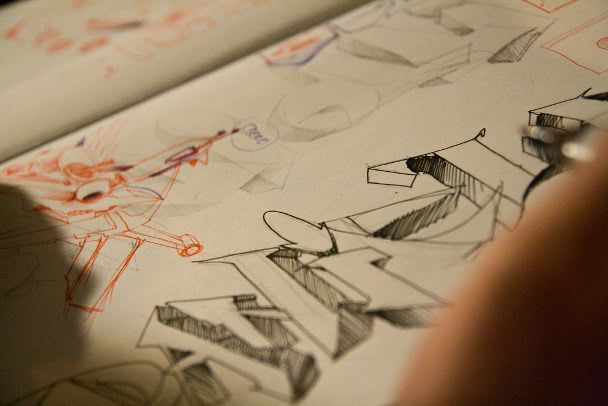 For me it was interesting to see how his abstract-looking 3D spray-paints are inspired by letters. Or how the Cologne city coat of arms influenced the graffiti he did on the Thalys. Maybe you have some time to take a look at the whole “Seak One and his Blackbook” photo-series. It’s really interesting!